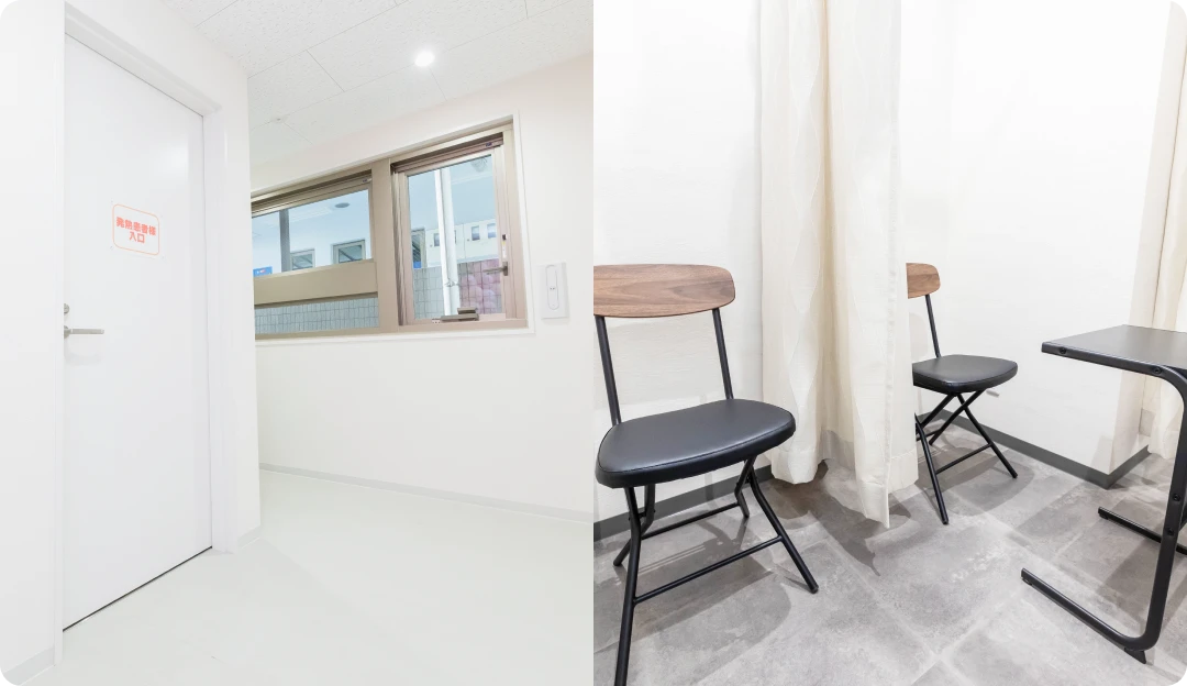 発熱のある患者さまには、一般の出入口とは別の導線でご案内し、完全個室にて診察を行っています。